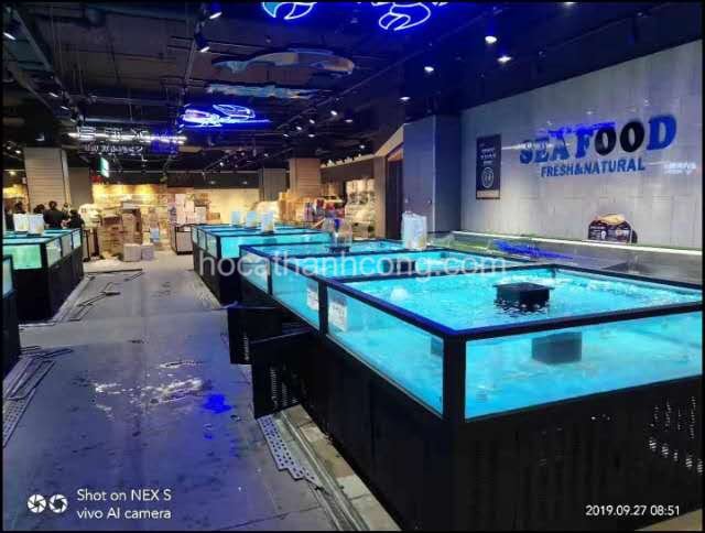Ưu điểm: Tiết kiệm diện tích, trưng bày được nhiều loại hải sản.