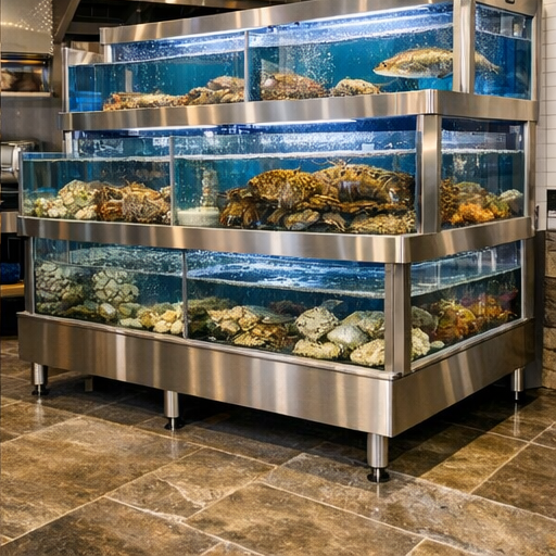 4. Hồ Hải Sản Inox Công Nghiệp – Bền Bỉ & Tiết Kiệm